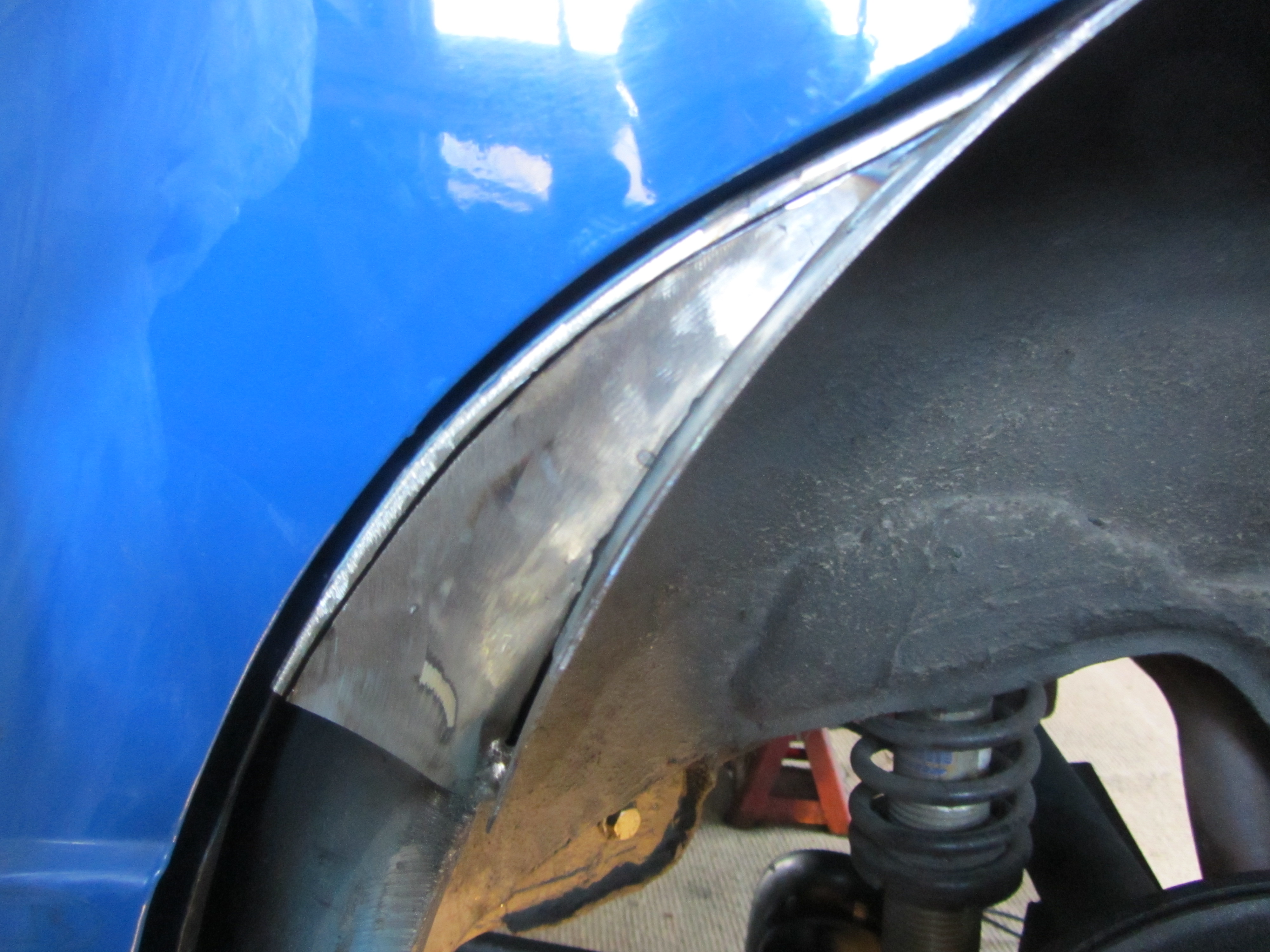 then spot welded to the angle, tapped up onto the inner arch and welded to that.
